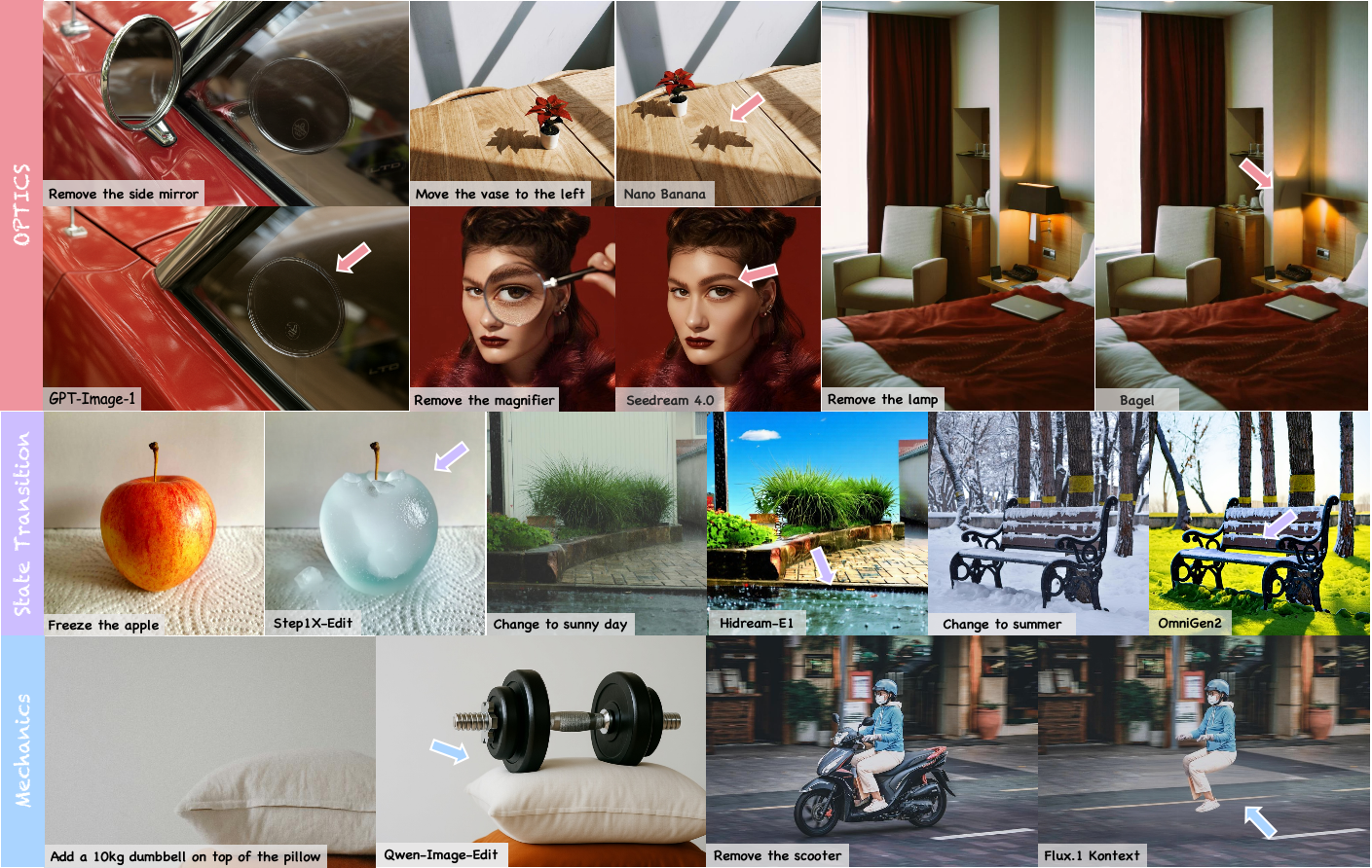 We find that even SoTA models could not deal with physics well.